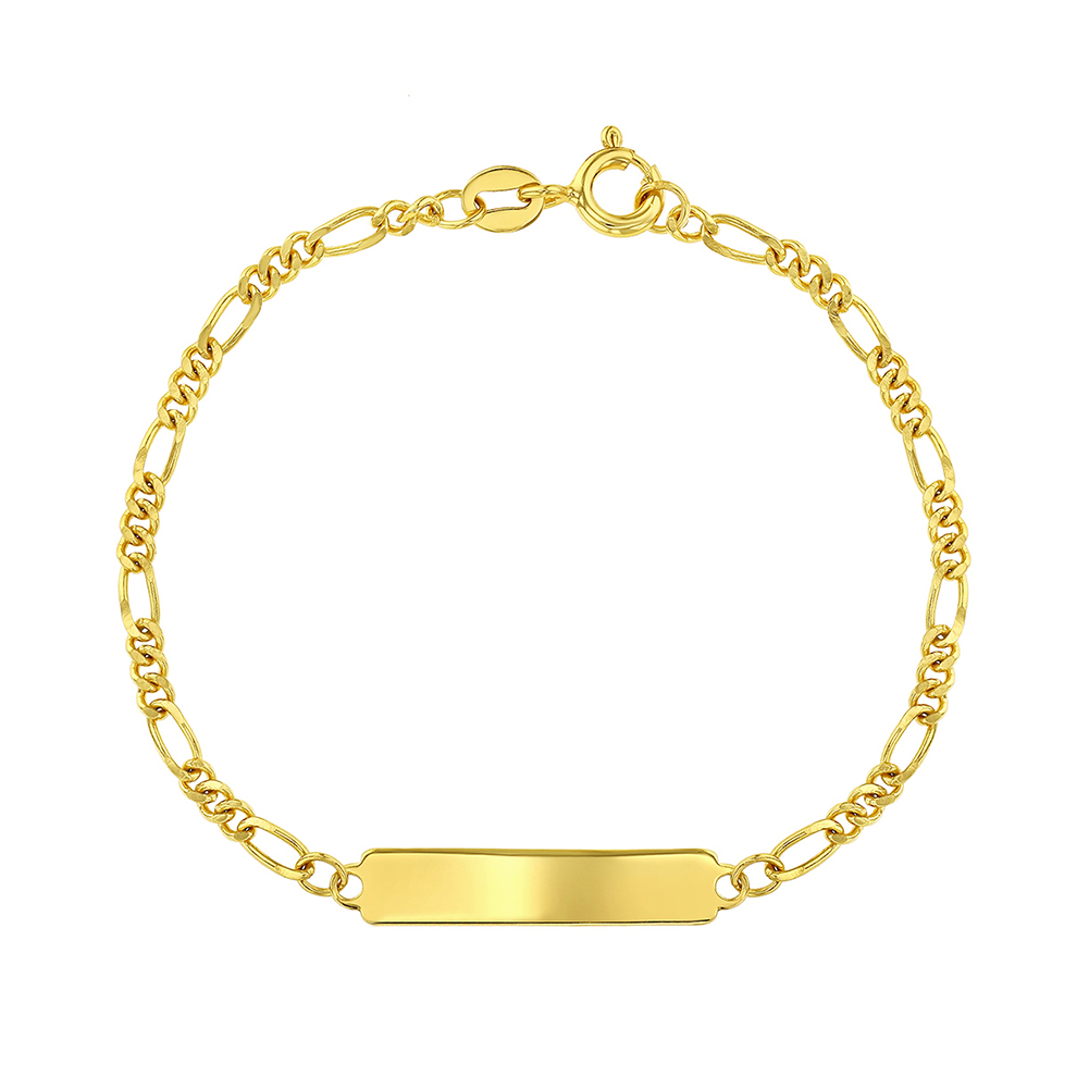 This everyday ID bracelet pairs the iconic Figaro pattern—one long link, three short—with a sleek nameplate for personalization. Crafted in solid sterling silver and finished with durable gold plating, it delivers warm shine with the strength you want for daily wear. Add a name, date, or short message to make it uniquely theirs.