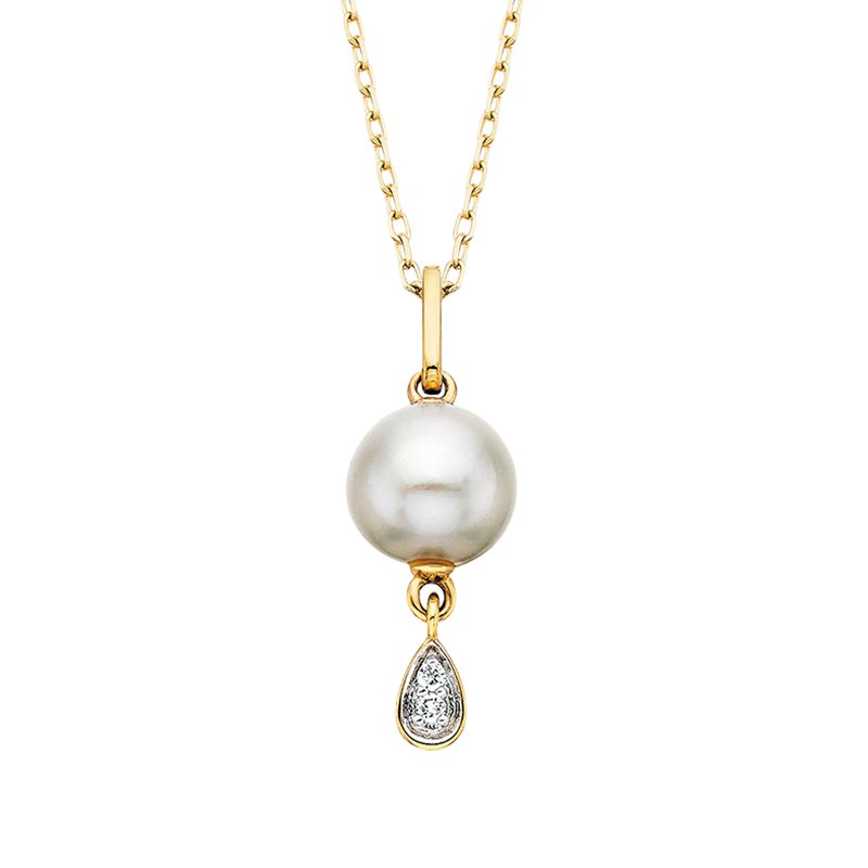 Elegant and timeless, this 10K yellow gold pendant features a luminous pearl nestled within a diamond-accented teardrop frame. The soft glow of the pearl and the sparkle of the diamonds create a look of refined beauty—perfect for both everyday sophistication and special occasions.