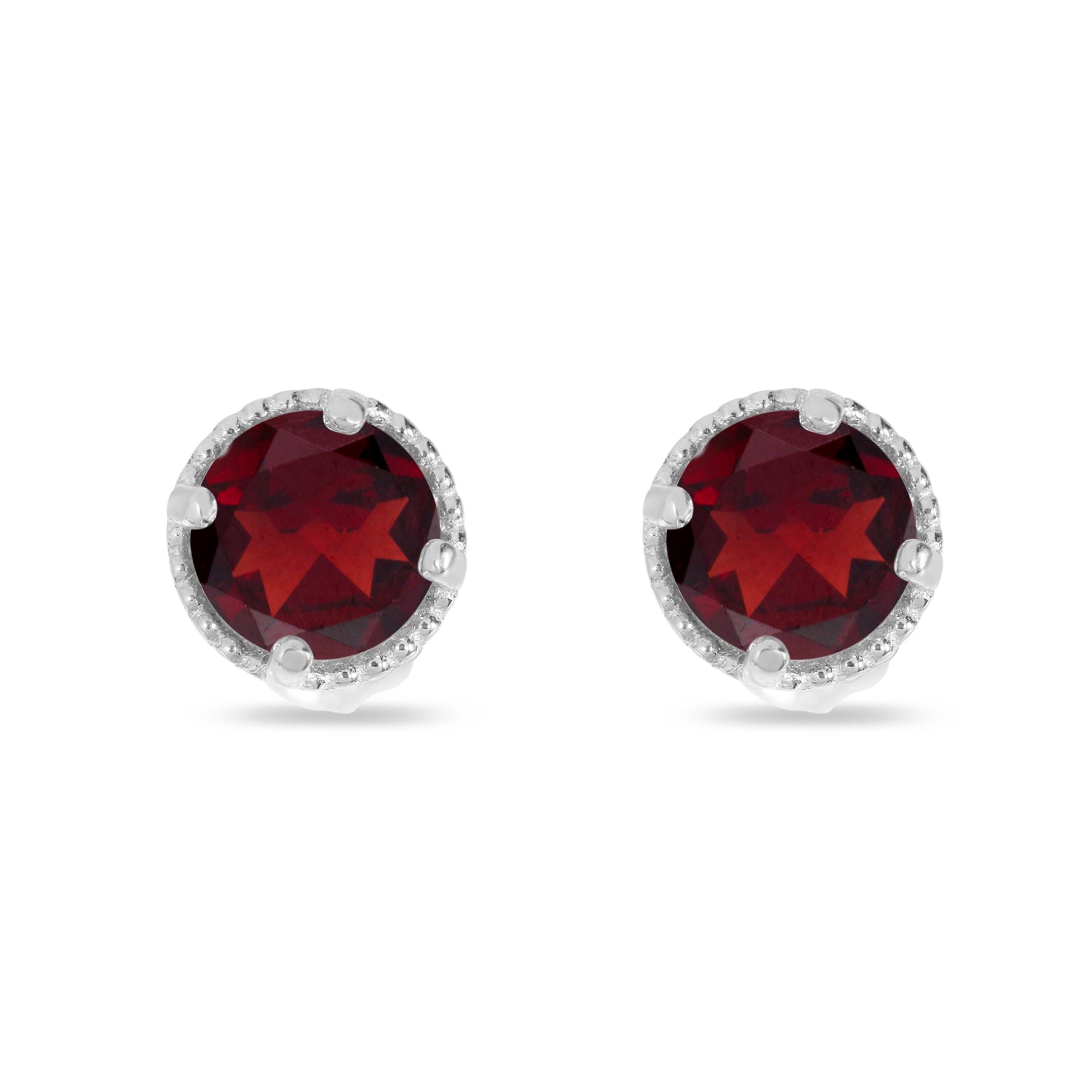Rich and refined, these 14K White Gold Garnet Halo Earrings highlight the deep red beauty of 4mm round garnets. Each gemstone is framed by a delicate millgrain halo, adding vintage-inspired detail and enhancing the natural brilliance of the garnet.