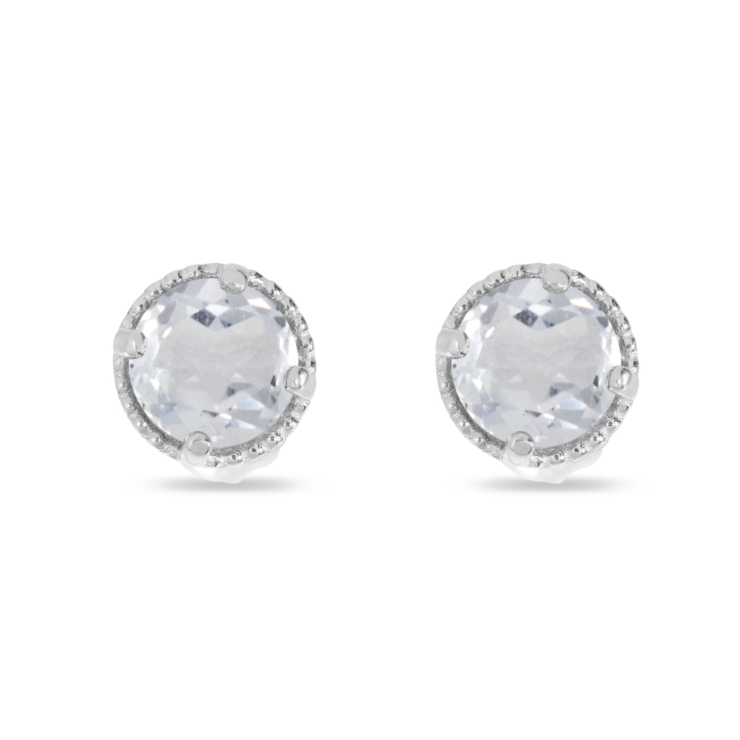 Bright and timeless, these 14K White Gold White Topaz Halo Earrings feature sparkling 4mm round white topaz gemstones, celebrated for their brilliance and clarity. Each stone is framed by a refined millgrain halo, giving the design vintage-inspired detail with a touch of modern shine.