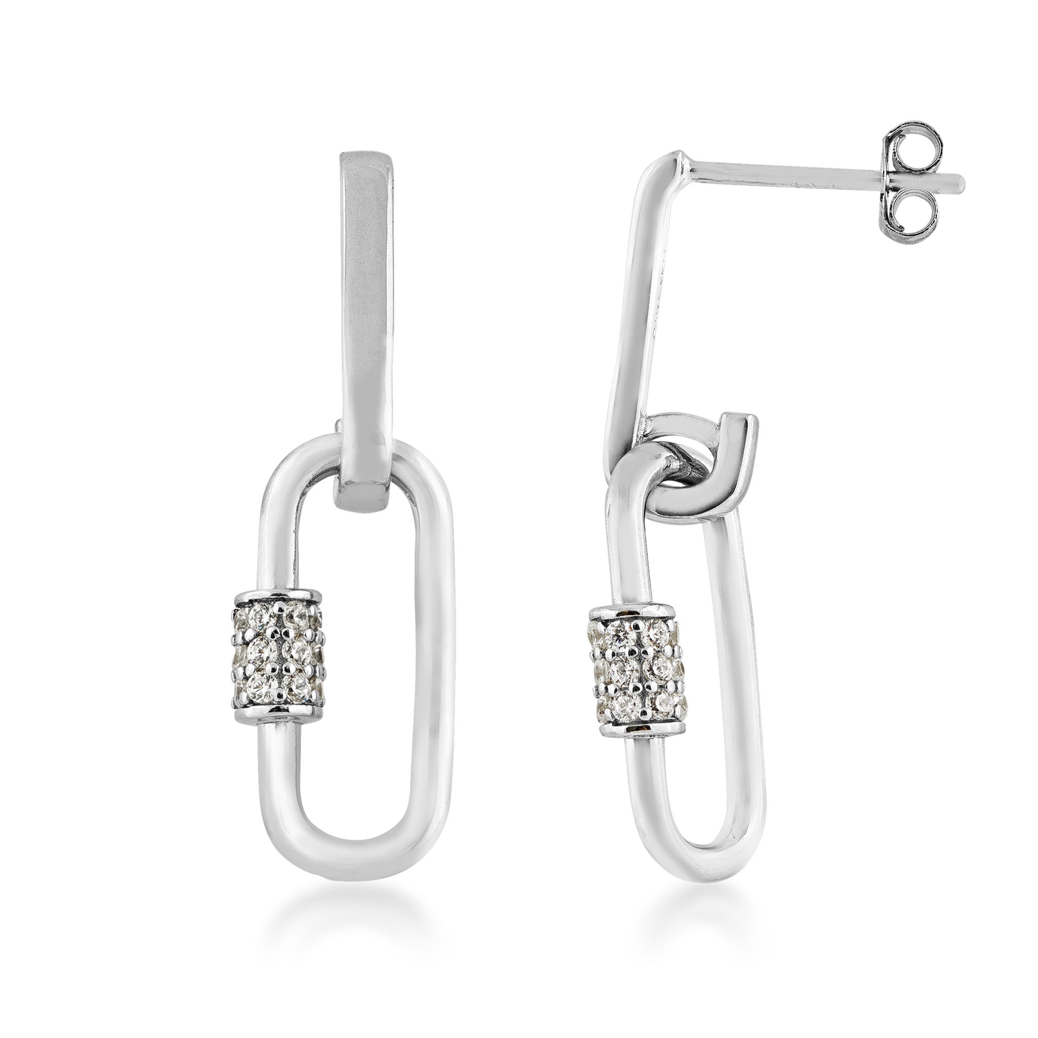 • Sleek and contemporary, these Sterling Silver Carabiner Dangle Earrings feature a modern linked design accented with sparkling cubic zirconia stones. The carabiner shape adds an edgy, fashion-forward twist, while the CZ detailing provides just the right amount of shimmer.