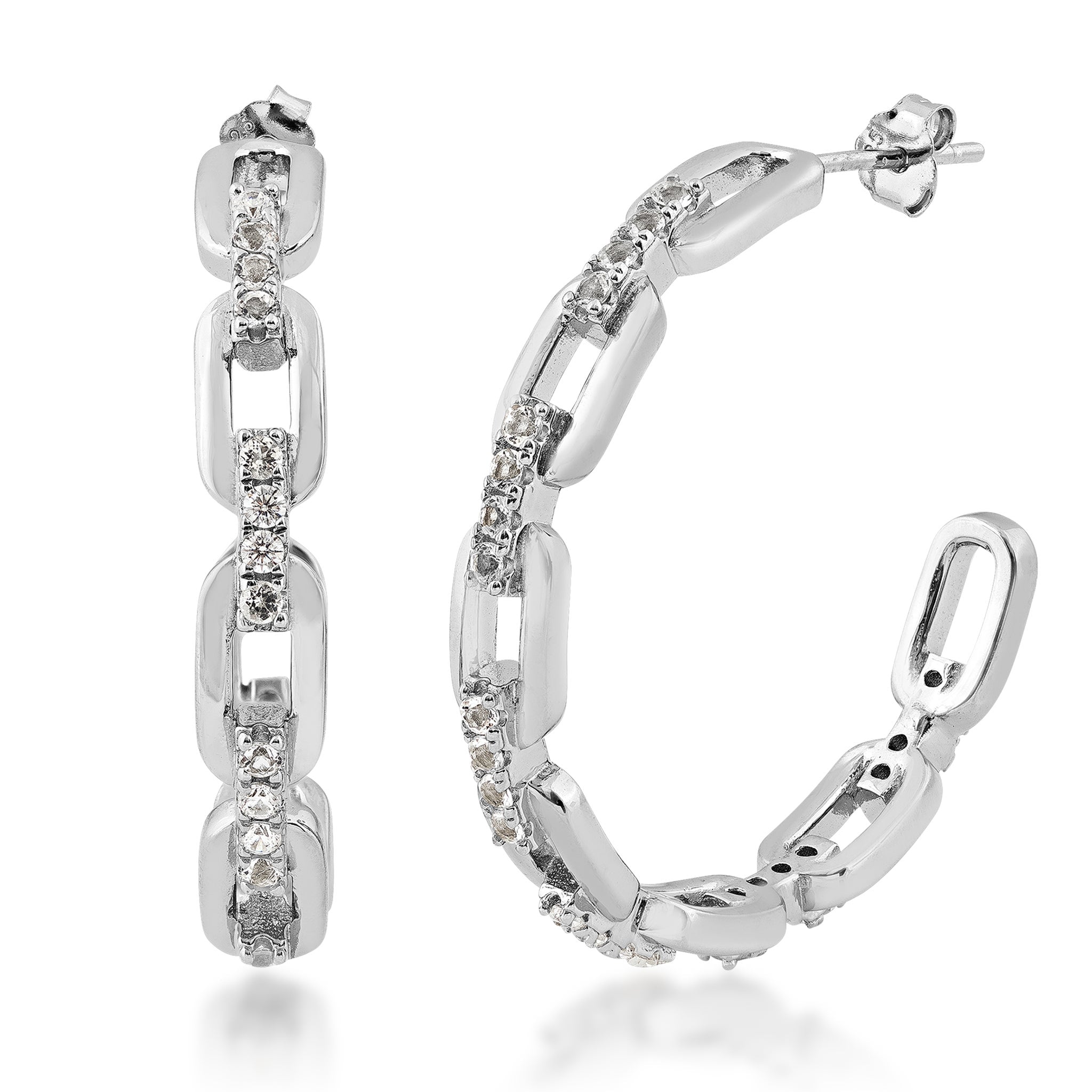 Modern and radiant, these Sterling Silver Paperclip Link Hoop Earrings feature a sleek linked design accented with brilliant cubic zirconia stones for just the right amount of sparkle. The contemporary paperclip motif adds a trendy touch to a timeless silhouette.