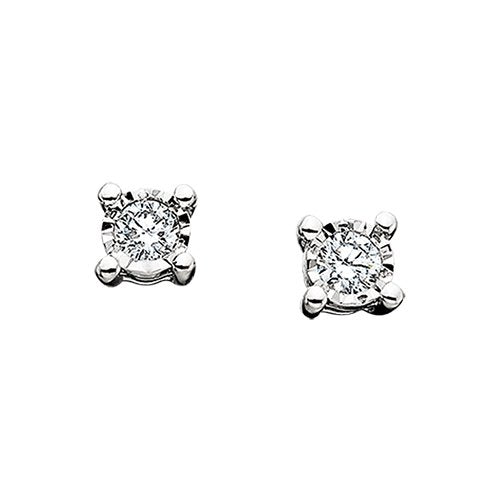 • Classic and sparkling, these sterling silver stud earrings feature round lab grown diamonds in timeless four prong settings. Perfect for everyday wear or as a first pair of diamond studs.