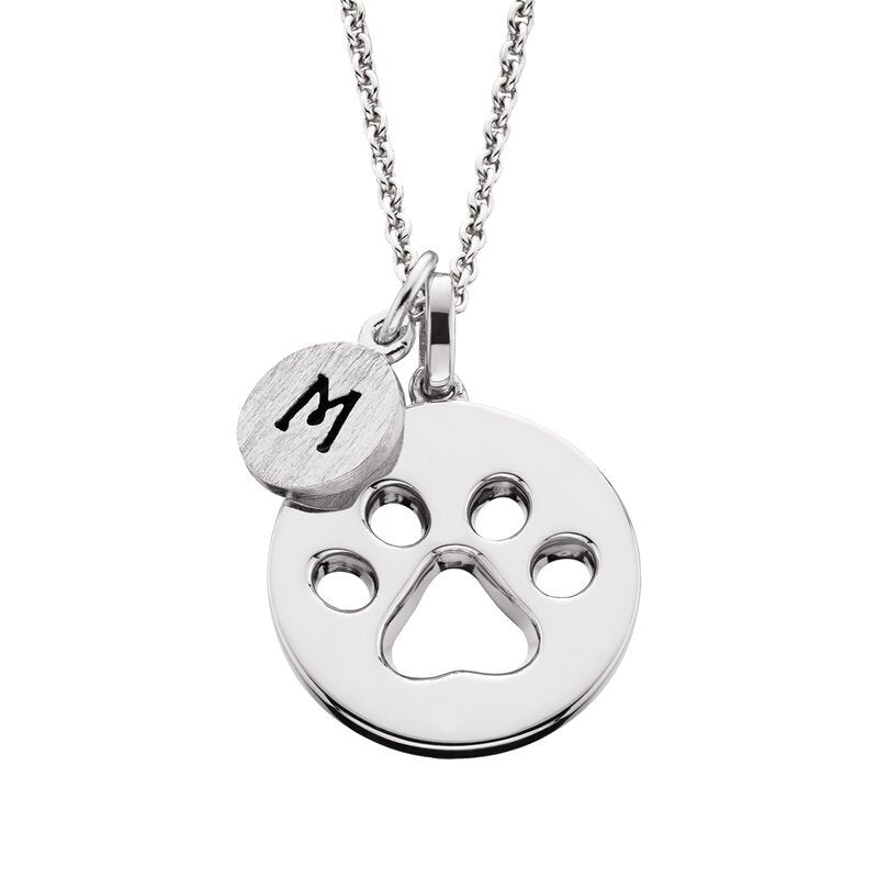 This sterling silver pendant features a polished round disc with a cut-out paw print —perfect for celebrating a favorite four-legged family member.