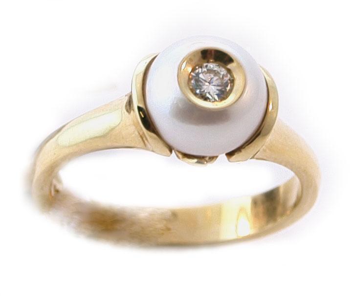 Elegant and luminous, this 14K Yellow gold ring features a captivating pearl accented by a sparkling diamond nestled within its surface. The design celebrates the harmony of natural beauty and refined craftsmanship, creating a timeless piece that radiates sophistication and grace.