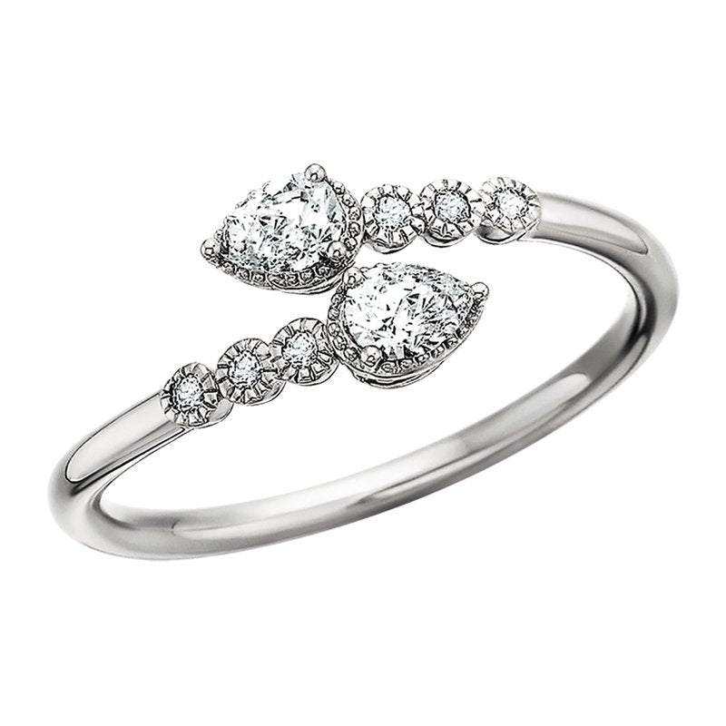 Graceful and modern, this 14K white gold ring features a pear-shaped design with a bypass silhouette, symbolizing elegance in motion. Its sleek lines and refined form make it perfect for everyday sophistication or as a standout statement piece for special occasions.