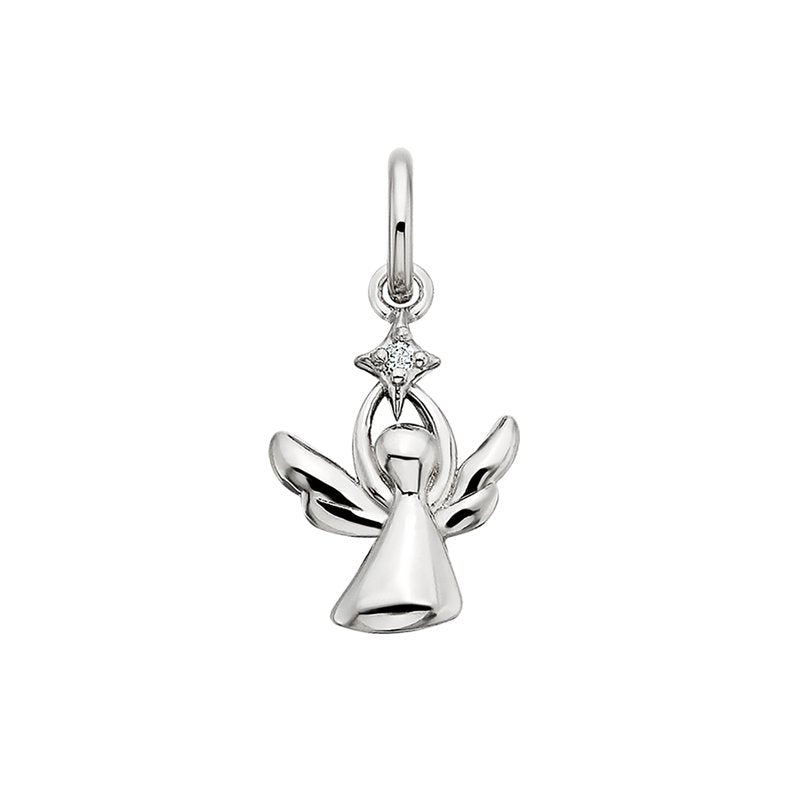 A graceful angel charm in polished sterling silver, finished with a sparkling white topaz star. Sweet and symbolic, it slips onto any chain or charm bracelet—perfect for everyday protection or a thoughtful gift.