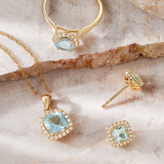 Sparkling diamonds and yellow gold, blending soft blue elegance with radiant warmth. The calming hue of aquamarine, brilliance of diamonds, create a timeless piece that feels both classic and fresh.