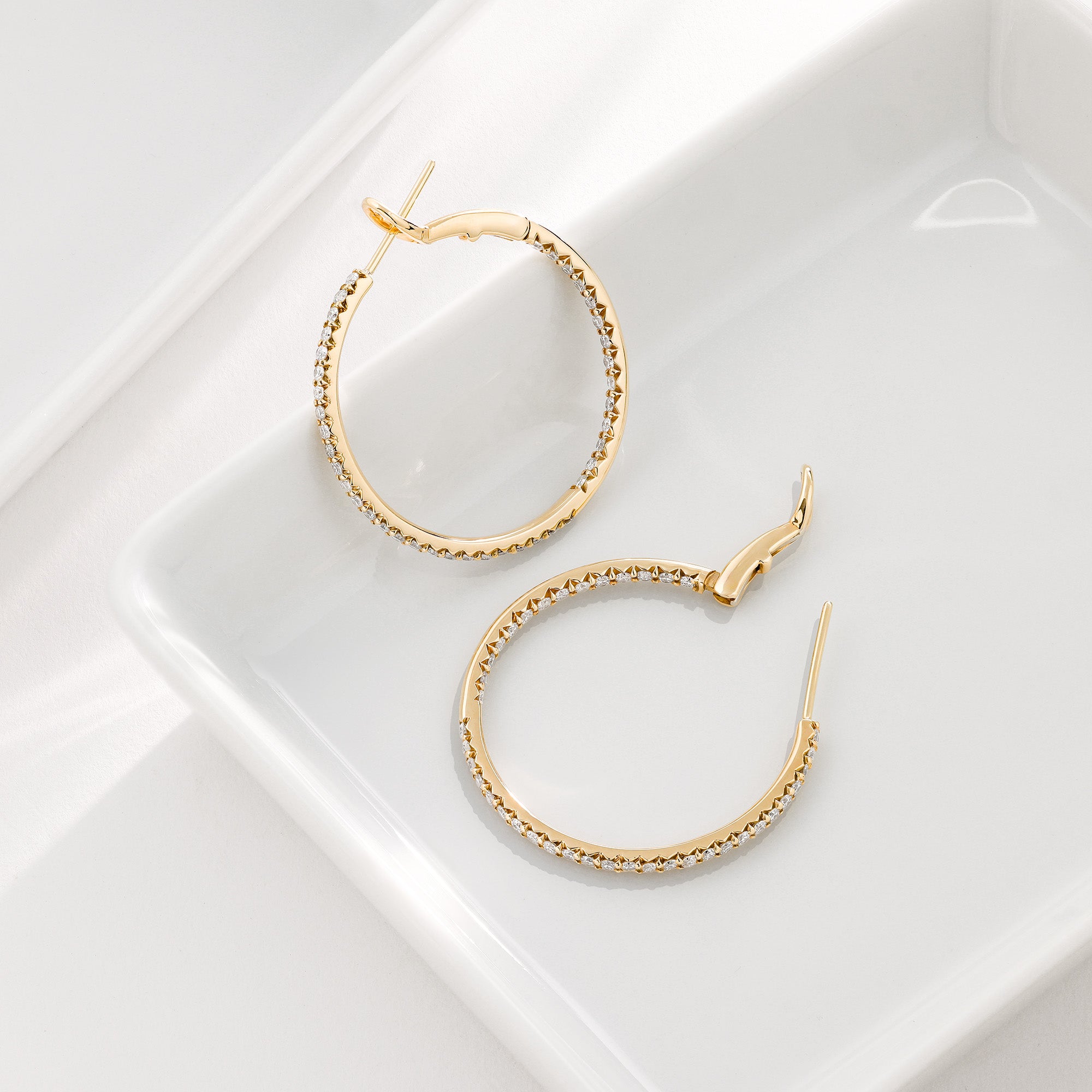 14K Yellow Gold Inside/Outside Diamond Hoops