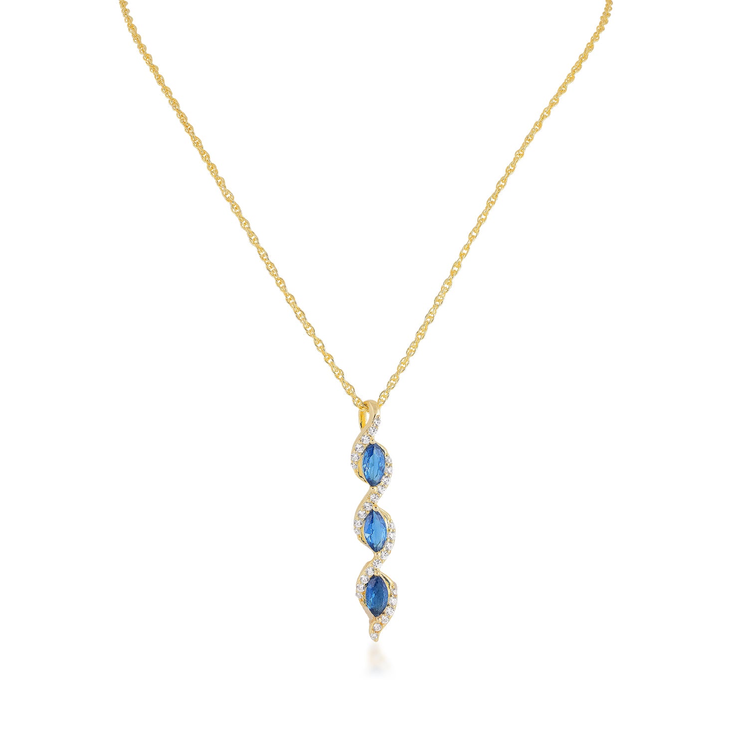 Graceful and luminous, this Sterling Silver Gold-Plated Ribbon Pendant showcases a striking marquis-cut blue spinel accented by sparkling cubic zirconia stones. The flowing ribbon design symbolizes elegance and movement, while the gold-plated finish adds a touch of warmth and luxury.